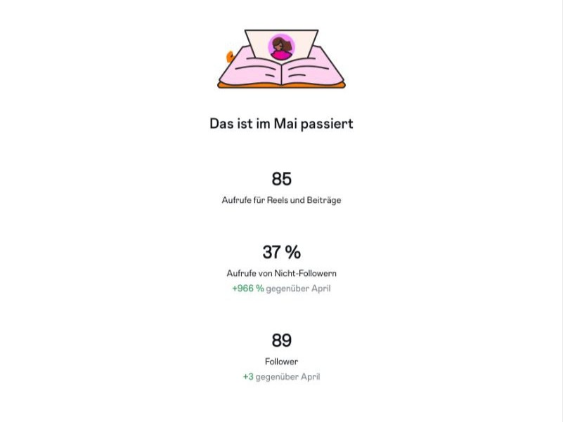Follower auf Instagram: 148, das sind immerhin 59 mehr, als im Mai. Ältere Statistiken habe ich leider nicht. Die Steigerung bei den Aufrufen ist auch nicht zu verachten.😉