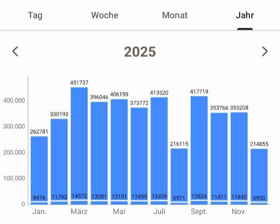 Das entspricht durchschnittlich rund 11.485 Schritten pro Tag. Im Vergleich zum Vorjahr sind das über 200.000 Schritte weniger – was sich gut mit den krankheitsbedingten Ausfällen und ruhigeren Phasen erklären lässt.