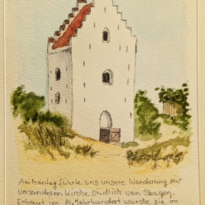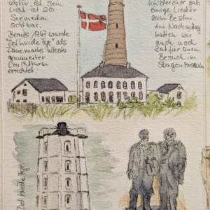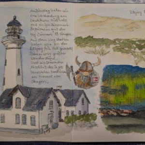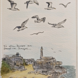 Nachdem ich ja mein Skizzenbuch von Kroatien überwiegend im Nachgang zu Hause mit Bildern gefüllt habe, wollte ich es dieses Mal etwas anders machen. Dieses Mal sollte es eine Art Tagebuch werden, mit den schönsten Erlebnissen und natürlich auch mit vielen Bildern aus Dänemarks Norden. Skagen selber hat ja schon einiges an Motiven zu bieten und es war ja auch der ein- oder andere Ausflug geplant.