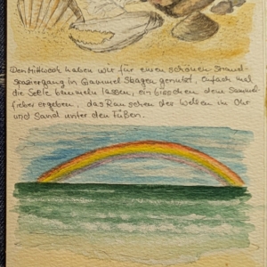 Über Judiths VIB habe ich dich gefunden. Was für ein wunderbares Urlaubsbuch Du da gefüllt hast! Vor allem, dass Du es geschafft hast, während des Urlaubs die Zeit und Ruhe zu finden, ist toll! Gelingt mir eher nicht, leider. Auch das kleine Format finde ich gut gewählt und war bestimmt auch praktisch… falls Dir beim nächsten Mal der Platz ausgehen sollte, diese Leporello Bücher lassen sich recht leicht mit wenigen Handgriffen mit zusätzlichen Seiten erweitern zwischendrin…