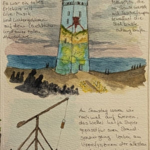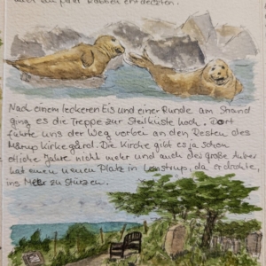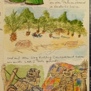 Dankeschön für dein Feedback. Nicht alle Bilder haben es im Urlaub ins Buch geschafft, einige musste ich zu Hause nachholen und auch die Farbe ist zu Hause erst dazu gekommen. Wenn man den ganzen Tag an der frischen Seeluft unterwegs ist, passiert es, dass einem beim Zeichnen die Augen zufallen. Das ist ja dann eher kontraproduktiv.🫣
